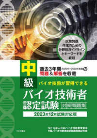日本バイオ技術教育学会編 ; 中級バイオ技術者認定試験問題研究会編 ; 2023年12月試験対応版. -- つちや書店, 2023. -- 巻号等:2023年12月試験対応版<図書>